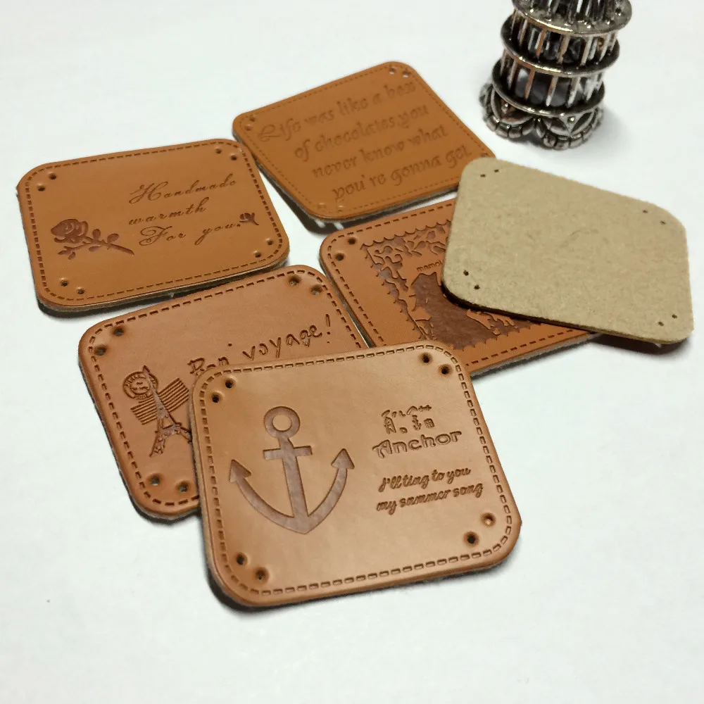 handmade label leder. leather labels personalized center fold labels made with your name logo branding tags handmade leather labe diy leather labels knitting labels leather label